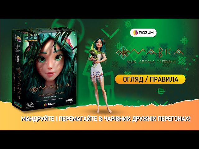 У цій чудовій настільній грі ви будете грати за одного з персонажів мультфільму "Мавка" - саму Мавку, Лукаша, Гука, Квуся чи Шустя. Кожен учасник отримує персональне завдання, що вказує, в яку локацію йому потрібно дістатися. Потрапивши в потрібну локацію, гравець бере жетон, що вказує на наступну ціль. Обирайте найвдаліші шляхи, використовуйте руни та властивості локацій, спробуйте випередити інших гравців, переміщуючись ігровим полем. Гравець, який першим дістанеться до третьої фінальної локації, перемагає.
